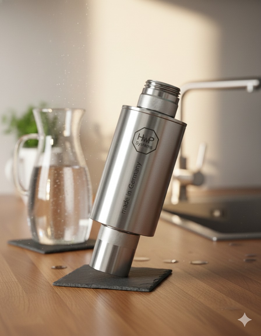 Even if the water filter physically removes all particles, chemical residues, such as pharmaceuticals or environmental toxins, remain stored in the water as negative information that can have potentially adverse health effects if not neutralized.
